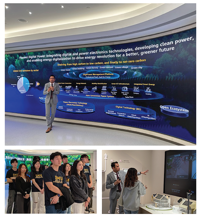 Our Day 1 office visits started with a trip to Huawei's Shenzhen Bantian Headquarters, where we gained valuable insights into both the company's impact and its technologies. We learned about Huawei's presence in Singapore, including a highly localised workforce and contributions to projects such as Changi Airport Terminal 5 and HDB smart camera systems, as well as its internal "Wolf Culture" that emphasises sharp intuition, strong teamwork, and perseverance. Students also took turns to share more about Singapore, SMU, and their experiences in SCIS, fostering a meaningful cultural exchange and allowing our hosts to better understand our academic journey and perspective.