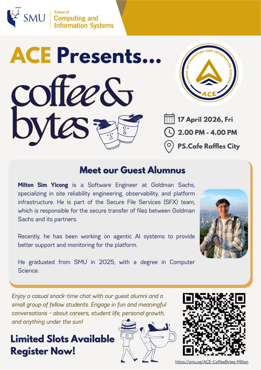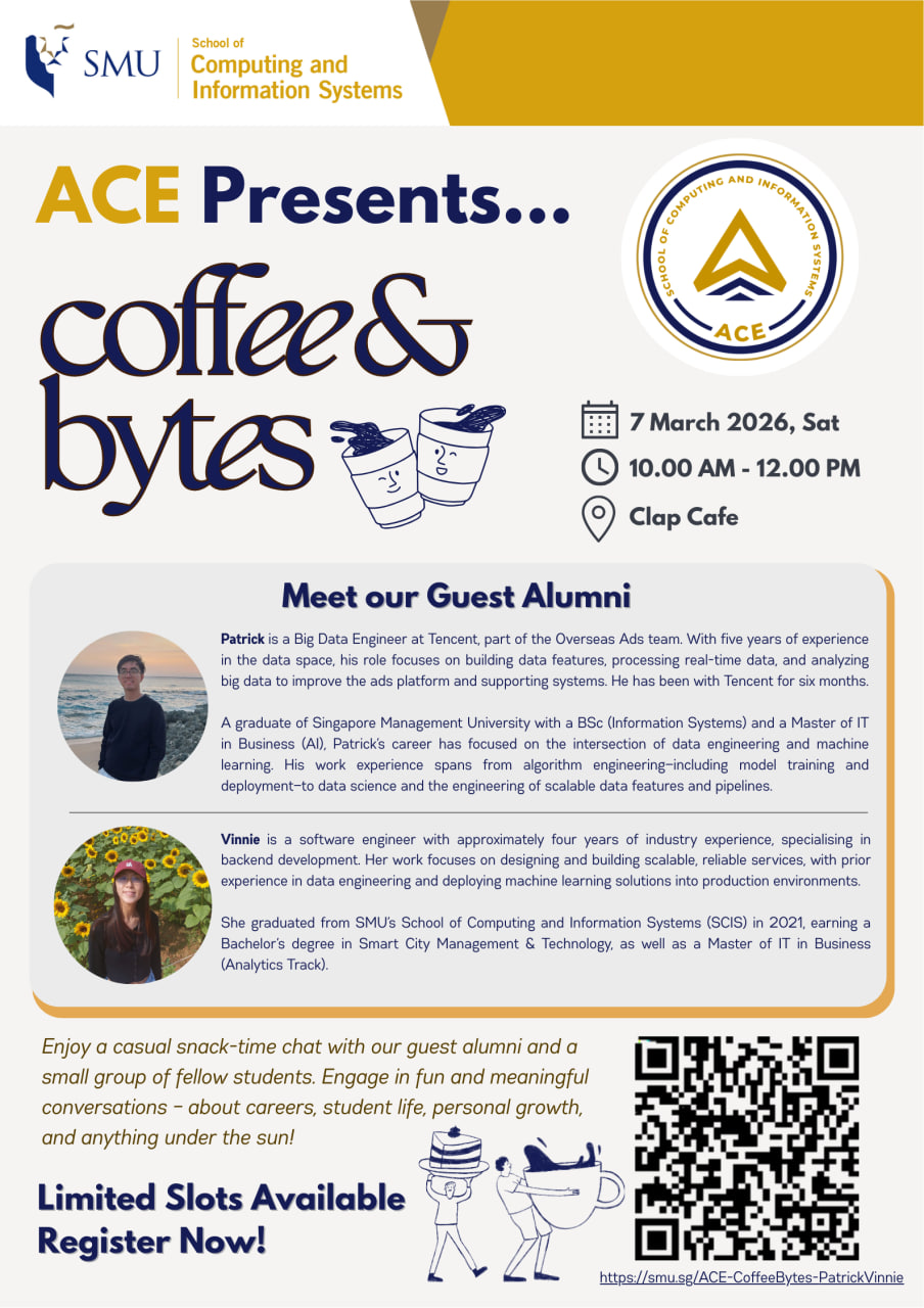The ACE programme aims to develop students as leaders who care for the SCIS community by providing them with unique outside-the-classroom learning experiences. The students serve as SCIS ambassadors who love their SMU experiences, and are ever-ready to share their SMU experiences with others around them.