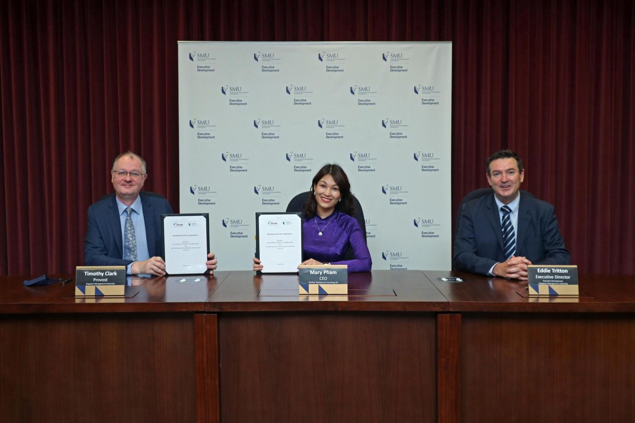“We have long-lasting partnerships with major universities in the world and more than a decade of experience in consulting and training for large corporations and enterprises in Vietnam. We believe that the partnership signing with SMU, Asia's leading university known for its difference in teaching methods and techniques, will contribute to supporting Vietnamese enterprises in management capability enhancement, digital transformation and sustainable development," emphasised Ms. Pham Thi Thu Hang.