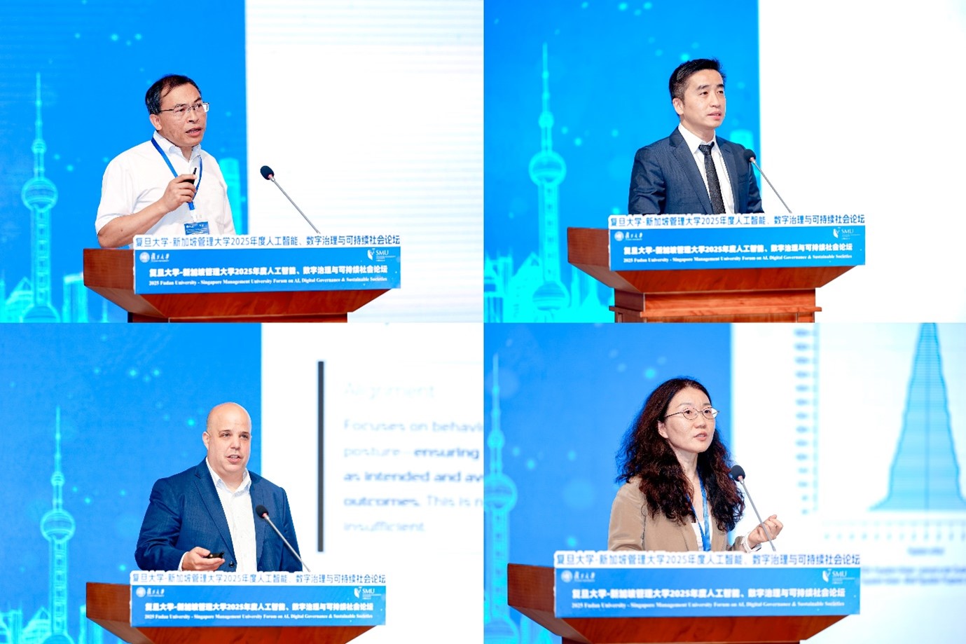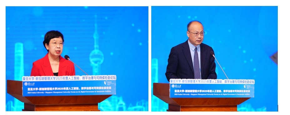 Ahead of the signing ceremony, the 2025 Fudan-SMU Forum brought together leading scholars and industry leaders from Shanghai, Singapore and beyond through in-depth discussions on the themes of artificial intelligence, digital governance and a sustainable society.