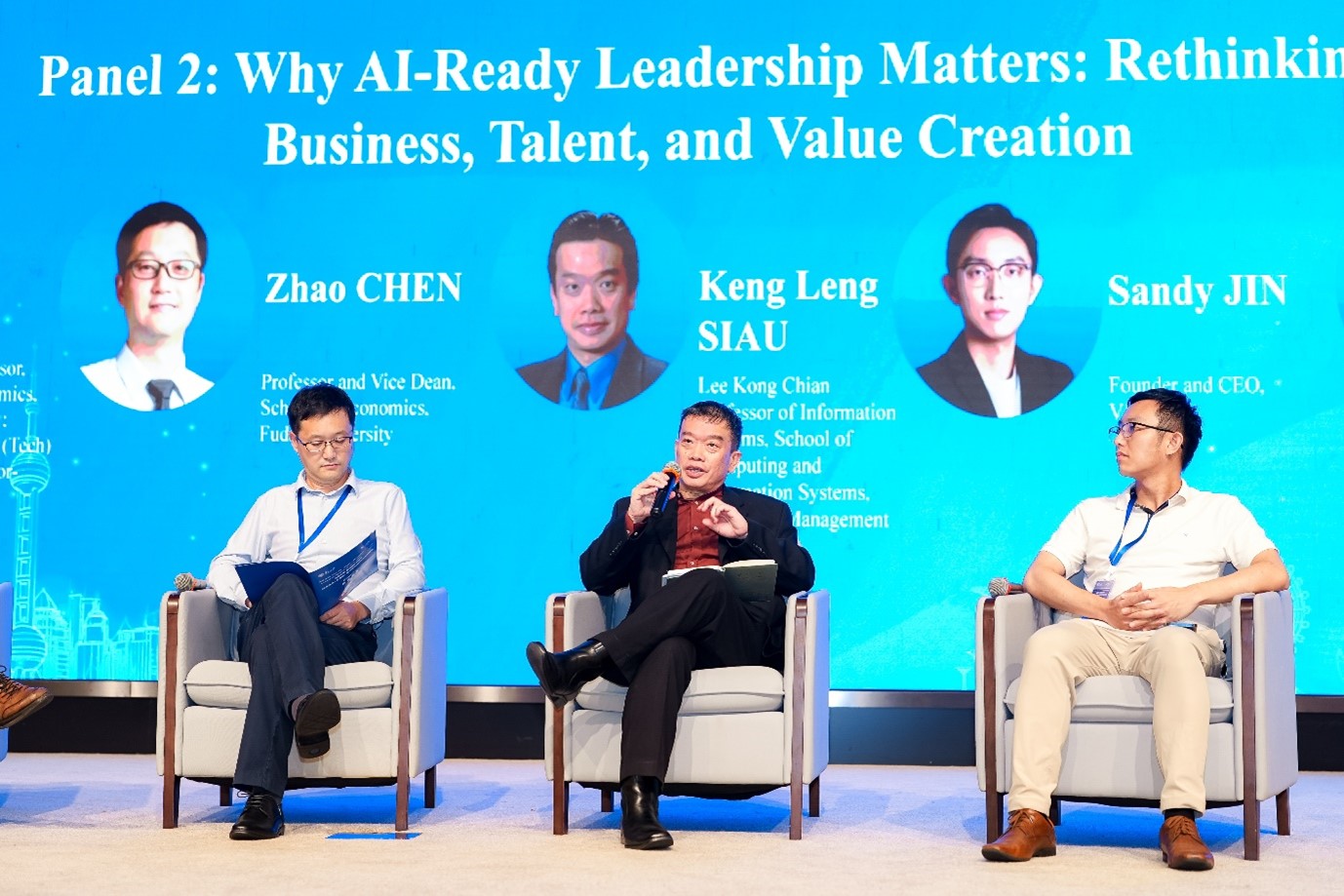 In the subsequent roundtable discussions, international academics and industry leaders engaged in dialogue on two key topics: “AI Governance: Co-evolution, Tensions and Synergies in the Public Good” and “AI Leadership and Business Value Creation.” The panels, which involved SMU School of Computing and Information Systems Professor Siau Keng Leng, examined how AI can deliver efficiency gains for public benefit while raising challenges of ethics and fairness, and explored enterprise transformation, talent development and value creation in the digital era. Speakers underscored the need for dynamic balance to ensure that technology ultimately serves the good of society, offering practical insights to inform future academia–industry collaboration between the two universities.