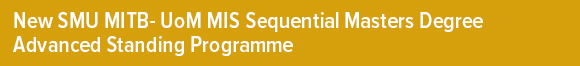 Through this collaboration, MITB graduates will have the opportunity to earn an UoM Master of Information Systems (MIS) degree in one year (by completing 8 subjects), instead of the typical two years (by completing 16 subjects). This is made possible by the 100 points earned which is equivalent to 1 year credit waiver into UoM MIS programme, as students begin study from the 2nd year of the UoM MIS programme to earn the remaining 100 points.