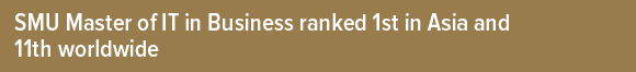 Singapore, 25 September 2018 (Tuesday) – The Singapore Management University’s (SMU) School of Information Systems (SIS) has proven itself to be home to one of the world’s best Masters in Business Analytics programmes according to the QS Masters in Business Analytics Rankings 2019. The School’s Master of IT in Business (MITB) programme was ranked 1st in Asia and 11th worldwide out of 75 Masters in Business Analytics programmes from 17 countries around the globe.
